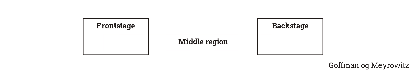 Medieforskeren Meyrowitz (1949-) har indført et tredje begreb, som han placerer mellem frontstage og backstage. Han kalder denne position for middle region. At befinde sig i middle region vil sige, at individet både optræder offentligt og udtrykker sin privathed. Det sker i høj grad i medierne. Tv-programmer er blevet domæner for almindelige menneskers mere eller mindre private liv.