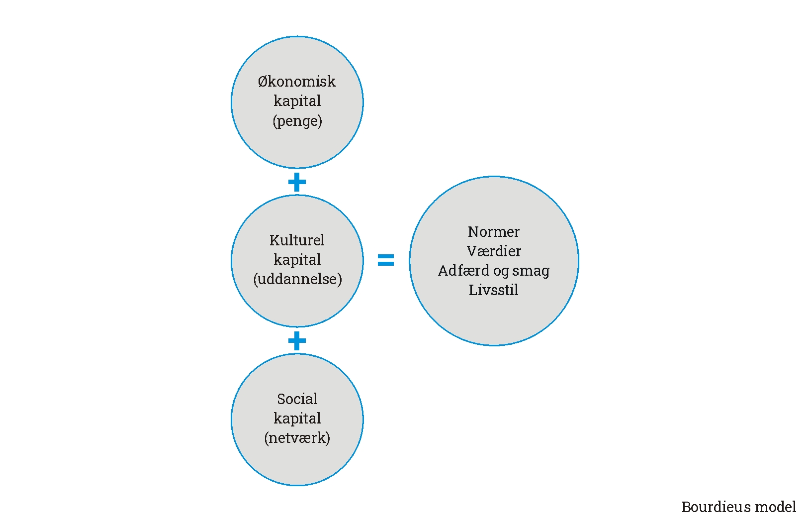 Økonomisk kapital handler om indkomster og pengeressourcer. Kulturel kapital er mængden af viden, uddannelse og dannelse, mens social kapital handler om sociale forbindelser og netværk.